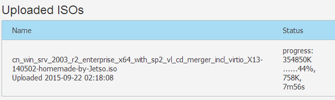 輸入上面準備64位系統URL,因為VULTR開通VPS的時候只有64位才有ISO自定義功能,點擊UPLOAD等待上傳。