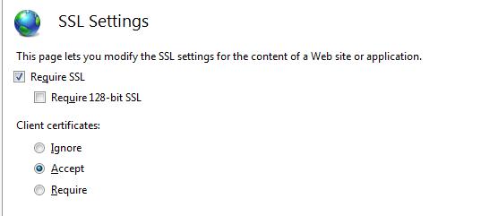 當然,你如果設置SSL Settings如下,則打開網站的時候是這樣的: