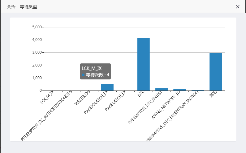 會(huì)話-等待類型:橫坐標(biāo)為等待類型,縱坐標(biāo)為等待數(shù)量。