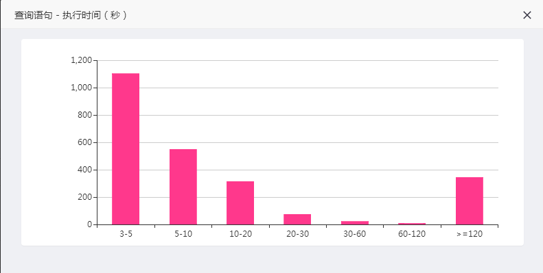 語(yǔ)句執(zhí)行時(shí)間:橫坐標(biāo)為時(shí)間范圍,縱坐標(biāo)為在執(zhí)行時(shí)間在范圍內(nèi)分布的語(yǔ)句數(shù)量。
