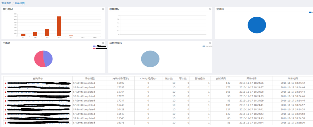 在【查詢語(yǔ)句】模塊的【查詢語(yǔ)句】-【匯總視圖】中,通過(guò)【執(zhí)行次數(shù)】或【cpu時(shí)間】【讀次數(shù)】【寫次數(shù)】【影響行數(shù)】等對(duì)重點(diǎn)語(yǔ)句,重點(diǎn)優(yōu)化。