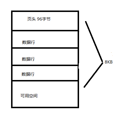 頁:用于數(shù)據(jù)存儲的連續(xù)的磁盤空間塊,SQL Server中數(shù)據(jù)存儲的基本單位是頁,磁盤I/O操作在頁級執(zhí)行,頁的大小為8KB。每頁的開頭是96字節(jié)的頁頭,用于存儲有關(guān)頁的系統(tǒng)信息,包括頁碼、頁類型、頁的可用空間以及擁有該頁的對象的分配單元ID;其他便是存儲數(shù)據(jù)的數(shù)據(jù)行與剩下可用空間,結(jié)構(gòu)圖如下(個人繪制)