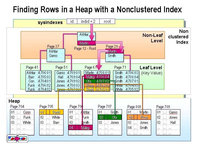 堆表內(nèi)的數(shù)據(jù)頁和行沒有任何特定的順序,也不鏈接在一起。數(shù)據(jù)頁之間唯一的邏輯連接是記錄在IAM頁內(nèi)的信息