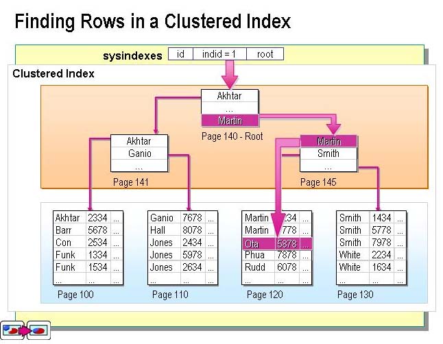 如圖,表中存放的數(shù)據(jù)是雜亂無章的,沒有按照姓名進行排序。我們將數(shù)據(jù)的姓名提取出來按照姓名創(chuàng)建一個非聚集索引。索引中姓名是排好序的,且索引所占用的空間遠遠小于表中數(shù)據(jù)所占用的空間,當(dāng)我們查詢表中某條數(shù)據(jù)時候,將不再進行全表掃描,而對索引進行掃描,得到想要的數(shù)據(jù)再定位到表中具體的數(shù)據(jù)。 但是 在非聚集索引上,要掃描某個具體的姓名也得耗費一定的時間,進一步優(yōu)化,在其上面在加一個Non-leaf level (非葉節(jié)點)可以B樹算法快速的定位。極大的提高了查詢速度