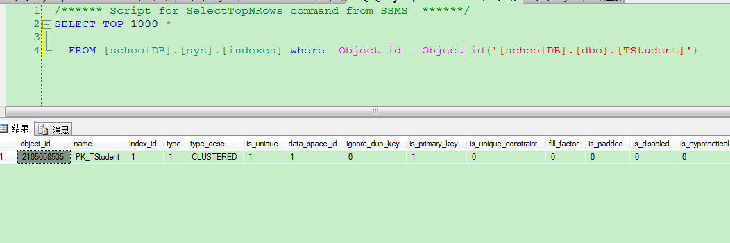 inidex_id = 0 說明表中無索引 inidex_id = 1 表中為聚集索引, inidex_id = 2或者3.。。。。為非聚集索引。