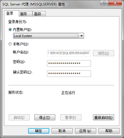 OK,觀察一下SQL Server代理的用戶(在SQL Server配置管理器可以看到,同樣可以在系統服務中查到)是NT SERVICE\SQLSERVERAGENT。