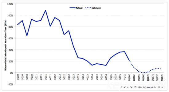 iPhone 很顯然是目前蘋(píng)果公司的領(lǐng)軍產(chǎn)品,蘋(píng)果 65% 以上的營(yíng)收都是由 iPhone 貢獻(xiàn)的,盡管蘋(píng)果繼續(xù)壟斷著智能手機(jī)行業(yè)的利潤(rùn),而蘋(píng)果也擁有一個(gè)前所未有的盈利業(yè)務(wù),但是 iPhone 需求量在經(jīng)歷了巔峰后早晚都會(huì)滑落,這肯定會(huì)對(duì)蘋(píng)果帶來(lái)非常重大的影響。