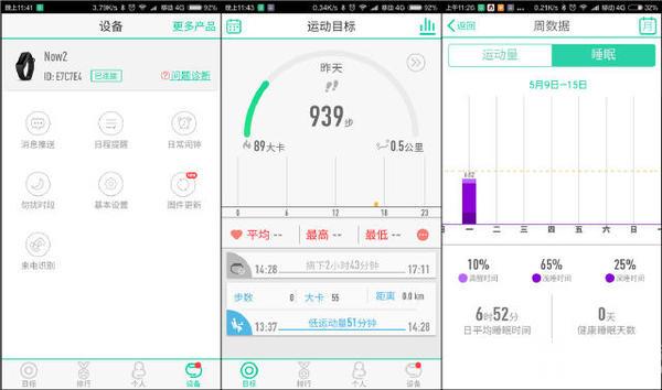 說完唯樂Now2的外觀體驗(yàn),現(xiàn)在來說說app方面的功能吧!其實(shí)如果不不需要消息推送還有日程提醒,唯樂Now2也是可以脫離手機(jī)運(yùn)行的,脫離手機(jī)后,唯樂Now2可以做到運(yùn)動(dòng)監(jiān)測,心率監(jiān)測,還有時(shí)間提醒,那么手機(jī)端app到底能做什么呢?首先是唯樂Now2的功能設(shè)置,還有就是數(shù)據(jù)記錄,這里需要說一下,唯樂app的數(shù)據(jù)記錄,跟其他智能手環(huán)的app完全不同,唯樂可以說是更加豐富詳細(xì),這也是官方所說的智能識(shí)別運(yùn)動(dòng)狀態(tài)功能,你可以看到低運(yùn)動(dòng)量的時(shí)間,還有摘下手環(huán)的時(shí)間!記錄的數(shù)據(jù)信息十分豐富!另外唯樂Now2還支持睡眠監(jiān)測,同樣數(shù)據(jù)也可以同步到app上。