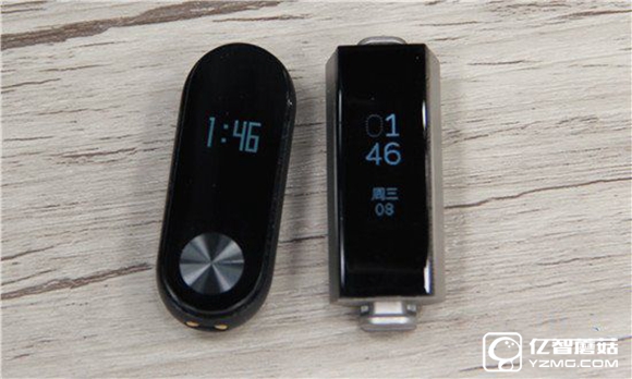 Fitbit Alta的機(jī)身上沒有任何按鈕,它的機(jī)身相當(dāng)光滑,采用了大量的不銹鋼材質(zhì),看上去要高端不少。小米手環(huán)2采用了聚碳酸酯和ABS工程塑料,且表面具有防刮及防指紋涂層。工藝上面板采用雙料射出+UV coating工藝,油漆平面度好且防指紋,外觀采用了一體黑效果極具美感。背面則采用了類膚質(zhì)磨砂工藝處理,盡可能的貼近肌膚。小米手環(huán)2擁有一塊0.42寸的OLED屏幕,而Fitbit Alta的屏幕尺寸更大,大約有1寸左右,同時(shí)顯示的內(nèi)容更多,但是兩者都有在陽光下顯示難以辨認(rèn)的缺點(diǎn)。