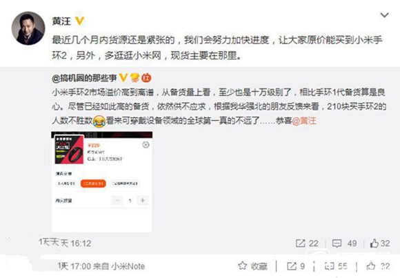 針對網上出現的加價售賣問題,華米CEO黃汪表示還需要幾個月的時間,最近幾個月內貨源還是緊張的,我們會努力加快進度,讓大家原價能買到小米手環2。