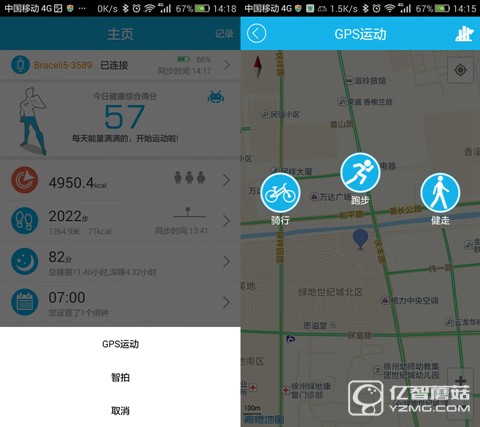 記錄里還有一個智拍功能,相比I5,功能更加強大了,當點擊此按鈕時,手環會進入拍照模式,并支持自動對焦和微調,點擊手環上面的圖標,手機就可以自動拍照,自拍控必備。
