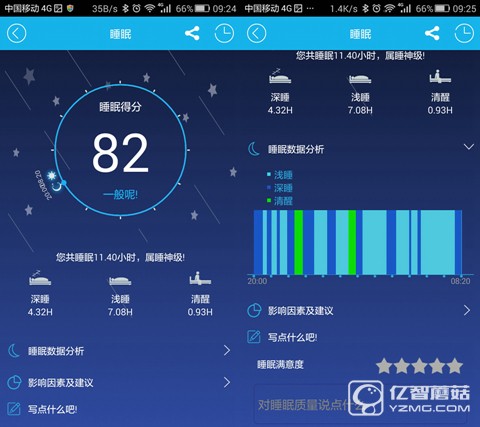 睡眠監測功能能清晰的反映出你的睡眠質量,有自動監測和手動監測,在這里推薦大家使用手動監測功能,滑到月亮圖標,長按三秒即可進入睡眠模式。睡眠模式開啟時,如果手環監測到運動,會自動記錄的。睡眠記錄能保存半個月,對睡眠質量的調整還是比較有用的。