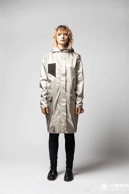 Anti-Surveillance Coat的外側涂層與普通的金屬面料涂層不同,工作原理類似于法拉第籠,能夠確保阻止信號的傳出,保證數據安全,同時還具有防輻射的效果。