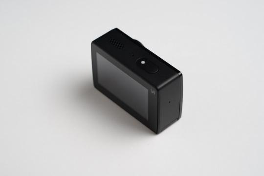 頂部的開關按鈕負責電源開關、錄制開始結束以及拍攝快門;除此之外所有操作均可在觸摸屏上完成;同時揚聲器和麥克風也集成在機身的頂部和側面。