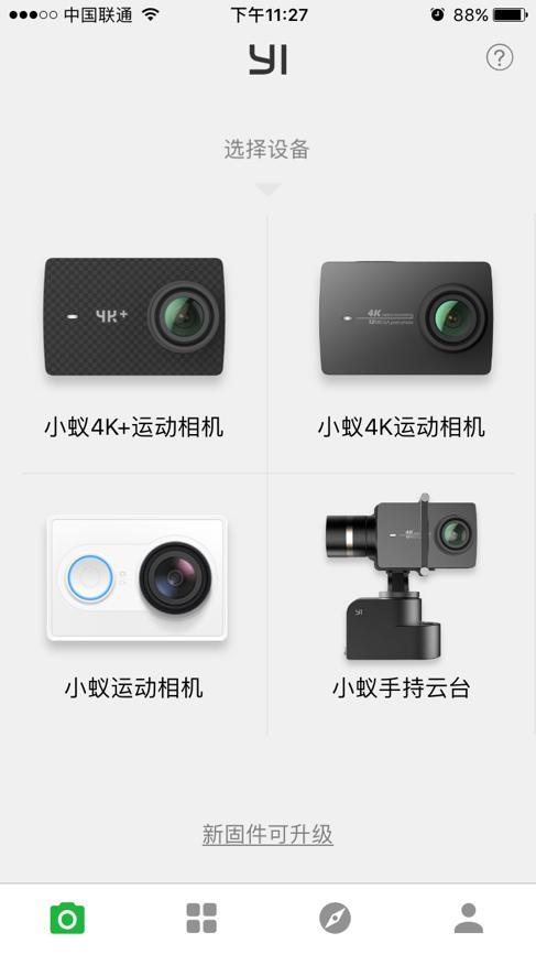 用手機連接上小蟻運動相機后打開App選擇相應的硬件,即可進入操作界面。