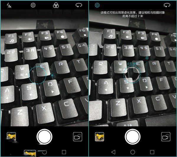干凈的界面除了焦距亮度等等沒有啥可以調整的,上方的小按鈕可以用來激活live photos拍攝,簡單來說就是拍一個超mini版的小視頻,能夠記錄下當時拍照那一瞬間的心情。 反觀榮耀V8,同樣清爽的界面看上去還不錯,上方除了可以激活自帶濾鏡外,還可以進入到大光圈拍照模式,拍出來的效果不錯呦~~