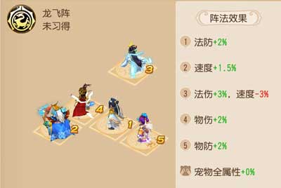 龍飛陣(攻防兼備):全能型陣法,無論走爆發路線或是控制輔助路線的隊伍都可以選擇它。