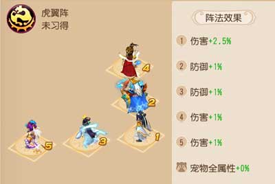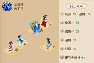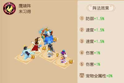 鷹嘯陣(1防2速2傷):效果與云垂陣相似,比較綜合的陣法,適合輔助或治療職業。