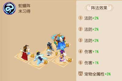 蛇蟠陣(3法防2傷):針對法傷隊伍的陣法,適合在PK或一些boss戰中使用。