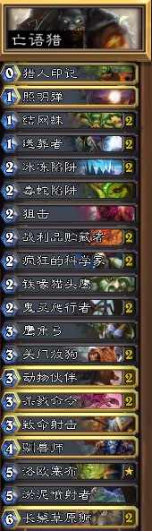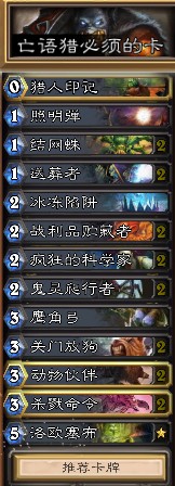馴獸師:能給野獸+2/2,野獸多的獵人會帶上,裸上會稍微有點坑,很多獵人都只帶一張。