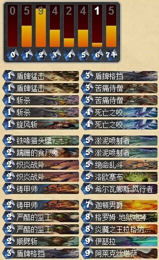 3、順劈斬:這個(gè)一開始是為了戰(zhàn)士永遠(yuǎn)的噩夢(獅子),不過后來漸漸發(fā)現(xiàn)了打獵人的地胡開局,就是對面硬幣跳雙送葬的時(shí)候送他上天。不過后來我也發(fā)現(xiàn),還能有效的打擊納克薩瑪斯的德魯伊,以及一些補(bǔ)刀。怎么說呢,屬于可選牌,根據(jù)天梯環(huán)境隨時(shí)更換。