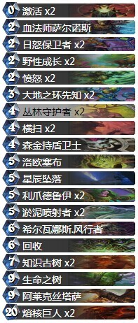 剩下幾張牌,我?guī)ё懔顺爸S和跳費(fèi),以期茍到后期;其余的就是和以前的控制思路的德魯伊沒啥兩樣。有幾張卡特別說明一下: