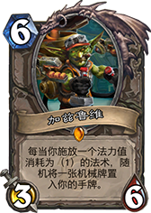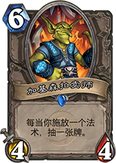奇跡牧并不像奇跡賊那樣擁有眾多的解場型法術,雖然有痛和滅在手,但是還是解場手段還是比較緊缺。前期主要依靠炎術士配合神圣懲擊或者真言術盾等造成AOE傷害進行解場,這一點有點類似于環牧,但是中后期的手段就顯得乏力了。這時候就需要場面上有隨從站場,加茲魯維是個非常適合奇跡牧師的隨從,它既可以補充手牌,又可以補充隨從,大量的機械隨從意味著不錯的身材或者是不錯的零件,注意一下零件也是1費的法術哦,所以只要保護好加茲魯維你的手牌和隨從就會源源不斷,場面上的交換也會越來越占有優勢。當然,對手肯定會不顧一切的去解除加茲魯維,這一點也就給了加基森生存的空間,兩者之間有互相保護的巧妙平衡。
