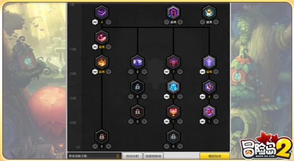 50級推薦技能加點如圖所示,之后優先考慮加滿血祭,然后再考慮血之渴望或者是出血的被動(紅色箭頭標出)