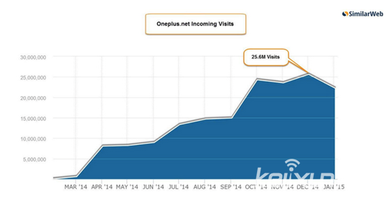 TNW認為一加手機的營銷策略的成功主要有三大因素:第一是性價比高,價格低但是配置高,一加并沒有因為成本犧牲質量;第二是邀請制的銷售模式,它使得廠商可以根據市場需求逐步加大產能,也使得消費者對這款“想要而得不到”的產品更加期待;第三是一加手機的用戶更多是集中在科技極客中,他們的認可讓這款科技產品的口碑傳播更有力度。這種創新的營銷策略成功引起了市場對這款智能手機的追捧與需求,一加官網的流量急速增長并于2014年12月達到了2560萬次訪問量,而此時距離一加官網上線僅一年時間。