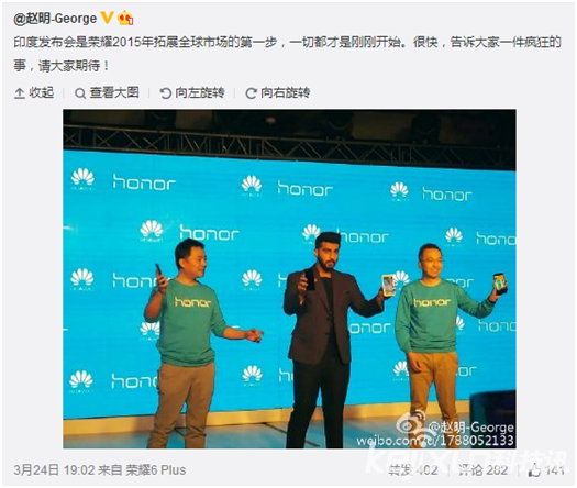 昨日,華為榮耀印度發(fā)布會(huì)讓人眼界大開,印度頭號男星阿布舍克·巴強(qiáng)到場助,更有瘋狂粉絲圍觀助陣,榮耀發(fā)布的榮耀6Plus、暢玩4X兩款價(jià)格高出國內(nèi)售價(jià)不少,更讓國內(nèi)用戶為之興奮。而隨后,榮耀總裁趙明發(fā)布的微博,“很快,告訴大家一件瘋狂的事,請大家期待!”又引起了網(wǎng)友的紛紛猜測。相繼,榮耀官微也跟著發(fā)布懸疑海報(bào),將這種瘋狂懸念留到4月1日。