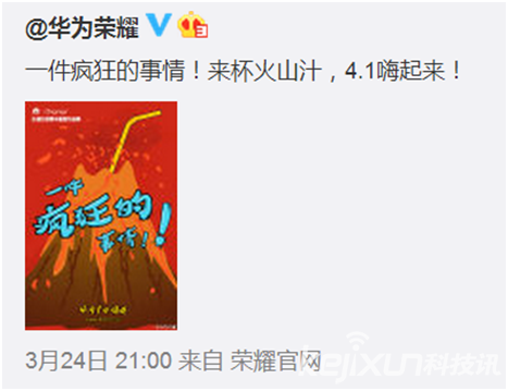 榮耀總裁趙明發(fā)布的微博,“很快,告訴大家一件瘋狂的事,請大家期待!”又引起了網(wǎng)友的紛紛猜測。相繼,榮耀官微也跟著發(fā)布懸疑海報(bào),將這種瘋狂懸念留到4月1日。...