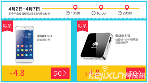 令人驚喜的是,今天網友還可享受最后三次的4.8元冰點價秒殺活動,榮耀拿出12款人氣精品,將分三個時段在VMALL(華為商城)、京東、蘇寧等九大電商平臺上進行搶購,各位網友不妨抓住秒殺的尾巴,不要錯過秒殺的好機會。