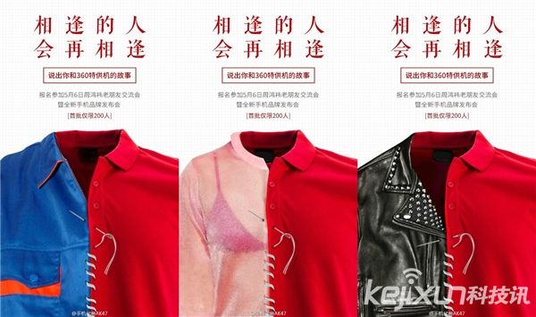 360手機(jī)真機(jī)長什么樣?之前我們報(bào)道了無邊框的特性,但目前還沒有人見過它的真容。從360官方發(fā)布的另類海報(bào)來看,海報(bào)分別以半件紅色T恤與半件其他衣服縫合為主視覺。主題是“相逢的人會(huì)再相逢”。
