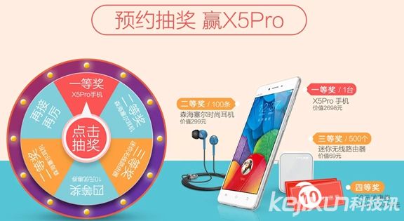 另外,只要預(yù)約成功的用戶,均可以參加抽獎(jiǎng)活動(dòng),不但有機(jī)會(huì)獲得森海塞爾耳機(jī)、迷你路由器、優(yōu)惠券等,還有可能直接免費(fèi)獲得vivo X5Pro。