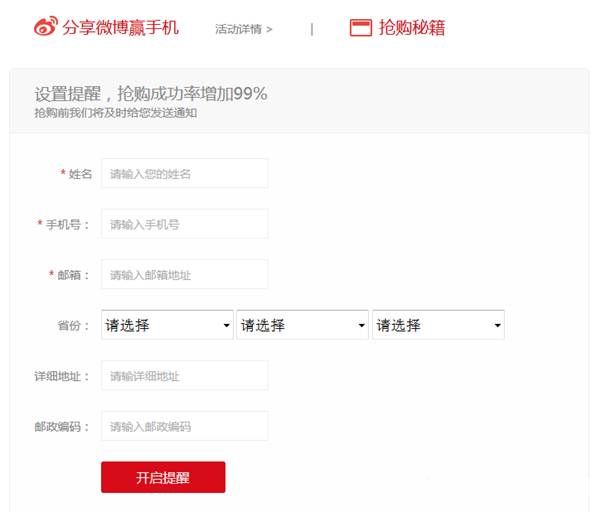 1. 在5月19日上午10點之前進入活動頁面,點擊“完善提醒信息”盡快完善您的有效聯系方式、收貨地址并綁定快捷支付(即搶購秘籍);