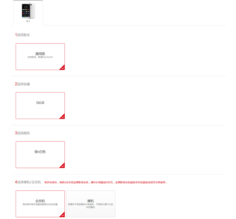 2. 5月19日上午10點預約結束后,樂視商城將開放選配功能頁面,您可以進入選配功能頁面提前選擇機型配置,12點現貨開放購買時,直接點擊“立即搶購”按鍵參與搶購;