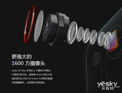 另外,nubia Z9 Max在拍照方面依舊維持“手機中的單反”水平,搭載了1600萬像素的索尼IMX234鏡頭,用上了更好的藍玻璃鏡片和驅動馬達;而且前置鏡頭除像素之外,素質和后置鏡頭配置基本相等,并且加入了全新的NeoVision5.0,將拍照功能重新整合,能夠提供更好更專業的拍照體驗。