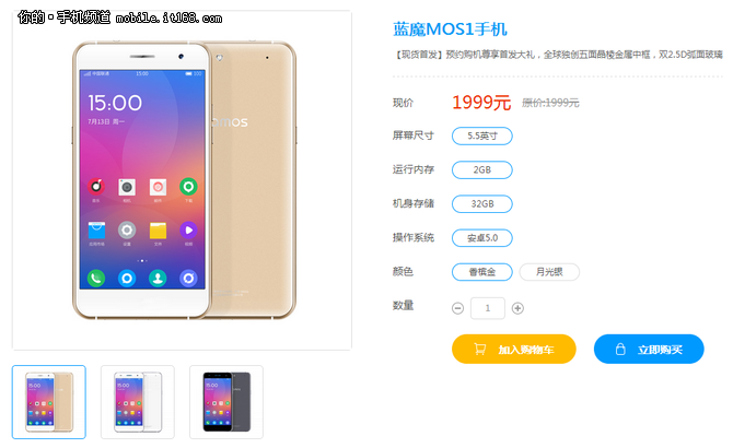手機圈的新力軍 藍魔MOS1預售價1999元