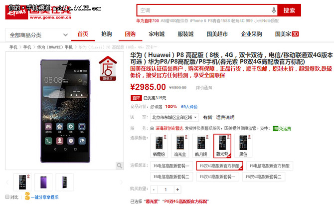 現(xiàn)貨直降六百 華為P8高配版僅2985元