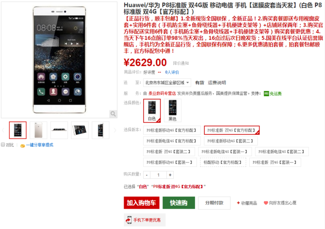 神機(jī)竟然暴降500元 華為P8最低僅2448元