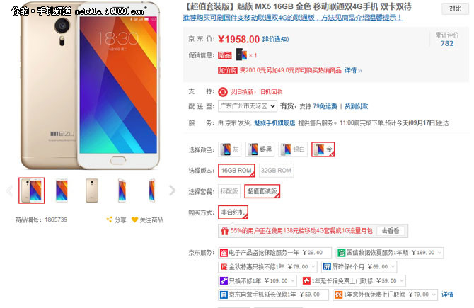 京東購(gòu)買魅族MX5套餐價(jià)格是1958元,可以獲得魅族MX5 16G手機(jī)一臺(tái),并且魅族豪華禮包里面包含有EP21耳機(jī)、皮套和貼膜,比而且這些配置也是日常使用的必要配件,所以還是比較超值。