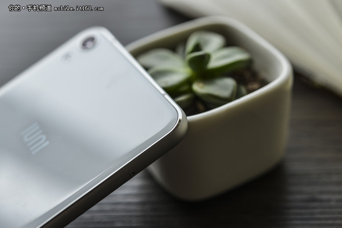 iuni N1整體外觀以白色基調(diào)為主,采用了非常簡約的風(fēng)格,雙面2.5D弧面玻璃與金屬中框的設(shè)計有點像vivo X5Pro,機身重量僅129克,使得該機有著不錯的手感,配合5英寸大小的屏幕,十分適合單手操控,尤其是對于女性用戶來說。