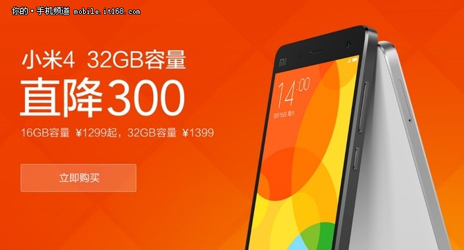 喜迎雙11直降三百 32GB版小米4僅1399元