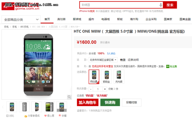 直達(dá)鏈接:經(jīng)典金屬旗艦暴跌 HTC One M8w僅1600元 ,,