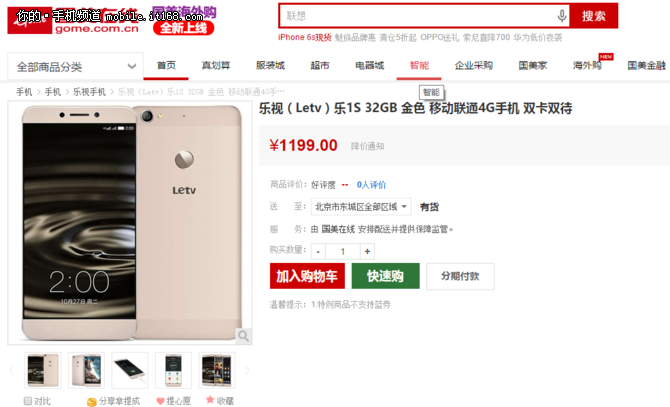 樂視官網:需2-3周發貨 樂1s原價預定1099元 ,,