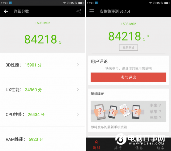 作為一款售價千元的手機來說,硬件配置完全可以和旗艦機匹敵,下面還是通過安兔兔跑分軟件進行測試,如圖所示。