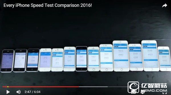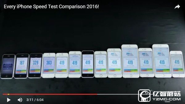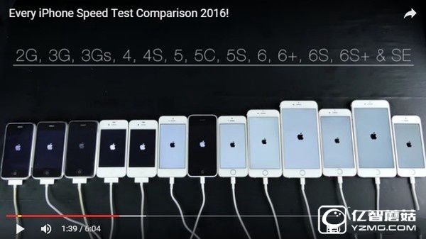 其實,即使不看結果,單單是這13部iPhone的同框就已經讓人對這一評測相當期待。外媒測試發現,整體而言,新機型要比老機型表現更好一些。具體來講,在開機速度大比拼中,小身板兒的iPhone SE強勢奪冠,iPhone6s Plus、iPhone 6s、iPhone 6、iPhone 6 Plus這些老大哥全部敗下陣來,墊底的則是iPhone 4s。