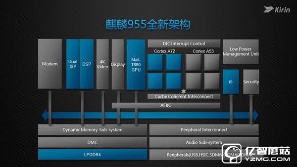 榮耀V8在處理器方面選擇華為最新的麒麟955八核芯片,基于領先的16nm FinFET plus工藝,包括4顆Cortex A72(2.5GHz)核心和4顆Cortex A53(1.8GHz)核心,并且還配備智能感知處理器i5,可以與大核A72、小核A53協同共享資源,由主系統進行智能調度,GPU依然是Mali-T880 MP4,另外還支持LTE Cat6以及VoLTE高清語音通話功能。