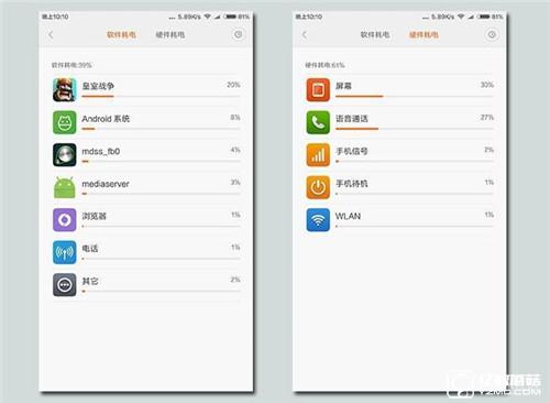 本輪測(cè)試語(yǔ)音通話半小時(shí),軟件耗電主要是電話,占總耗電的1%,硬件主要是語(yǔ)音通話,占總耗電的27%。耗電速度一般。