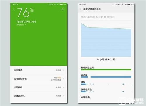 本輪測(cè)試待機(jī),12小時(shí)過(guò)去后小米Max耗電量占總耗電8%,根據(jù)截圖顯示,仍然可以繼續(xù)待機(jī)2天6小時(shí),耗電速度一般。